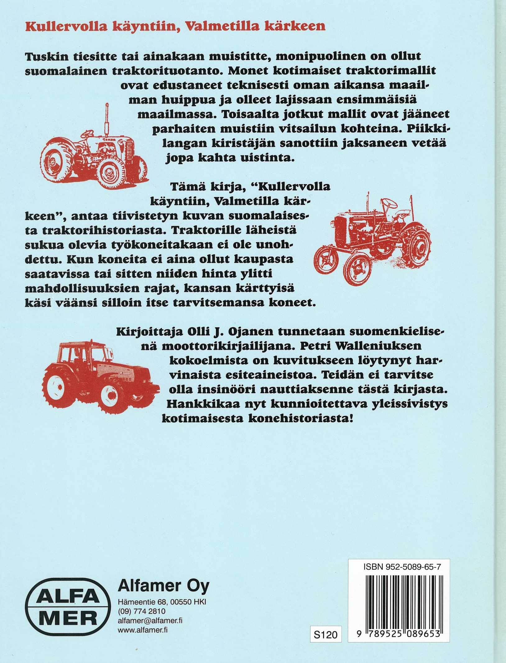 Kotimaiset traktorit; Alfamer -kirja , Olli J. Ojanen – Suomen tuotteliaimpia ajoneuvohistorioitsija