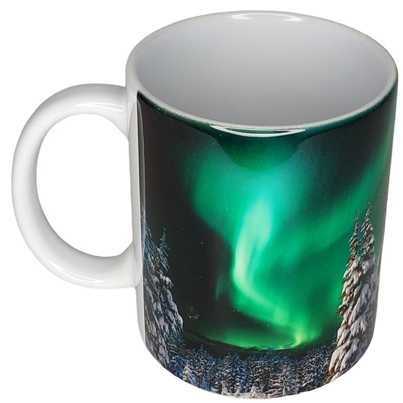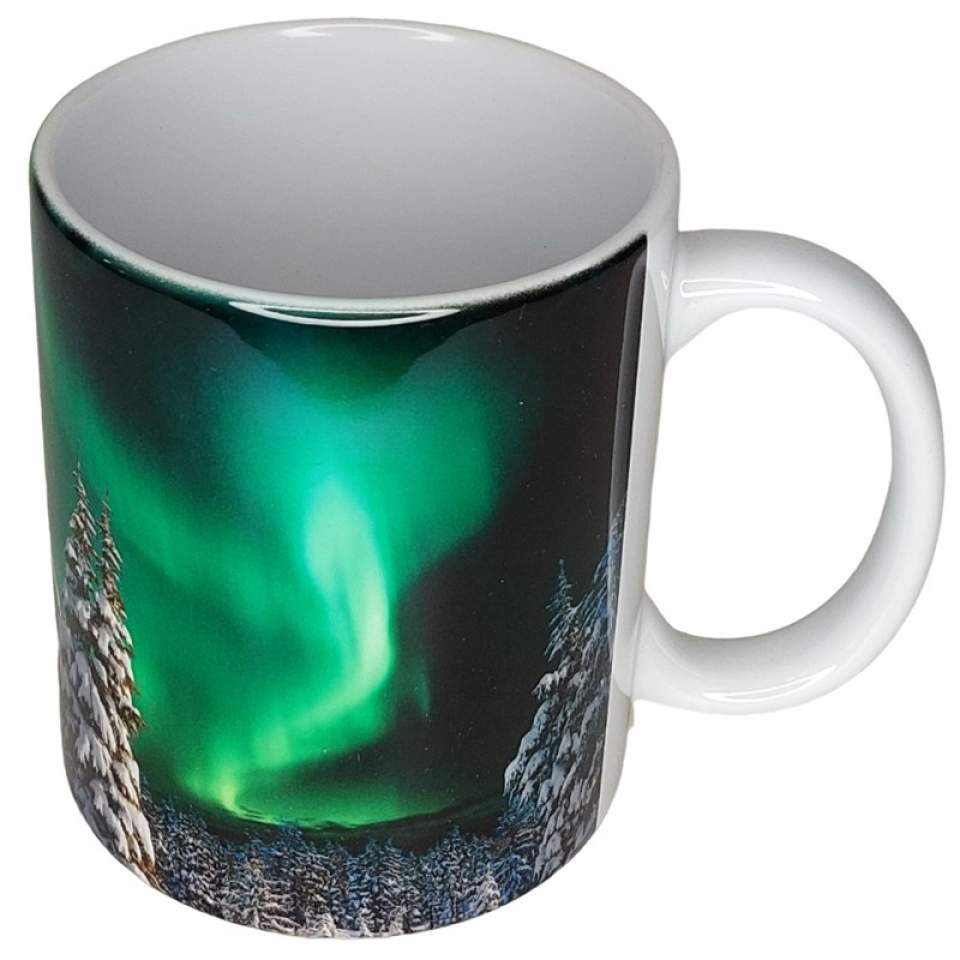 Nauti juomasi Revontulet Lapissa -mukista palaat Lapin tunnelmaan.