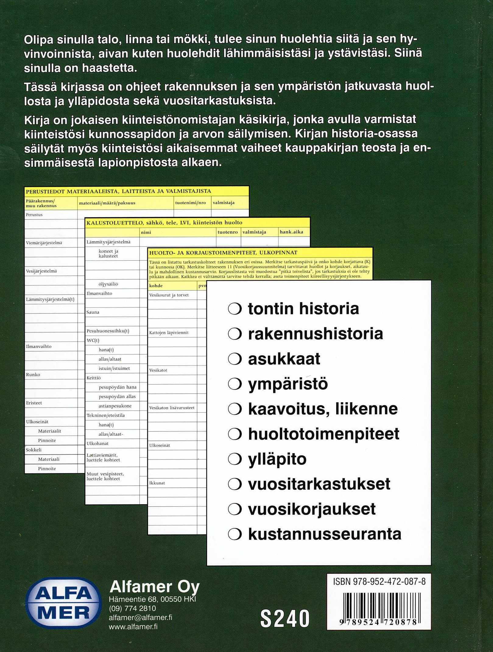 Talon huolto; Alfamer -kirja,