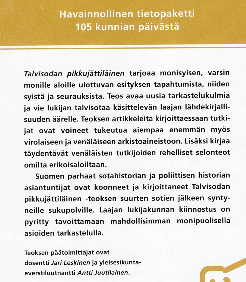 Talvisodan Pikku Jättiläinen; Leskinen, Juutilainen , antikvariaattikirja